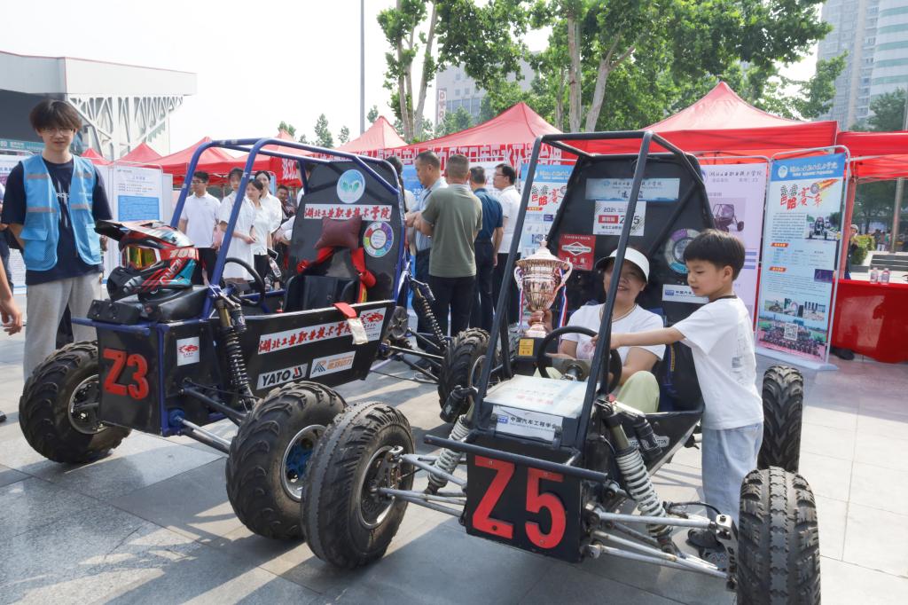 活动现场,谈球吧凌云车队成为一大亮点。他们携带在全国巴哈大赛中斩获一等奖的原车及配套装备惊艳亮相,为科技周增添了一抹独特的科技色彩。巴哈越野赛车以其酷炫的外观和卓越的性能,瞬间吸引了大量市民驻足围观。在赛车的互动体验区,现场气氛热烈非凡,人气爆棚。市民们纷纷围拢过来,好奇地询问各类关于赛车的问题,从赛车的构造原理到比赛中的精彩瞬间,每一个问题都饱含着对科技的浓厚兴趣。小朋友们更是兴奋不已,在工作人员的帮助下,小心翼翼地坐上赛车,体验了一把当车手的快乐。
